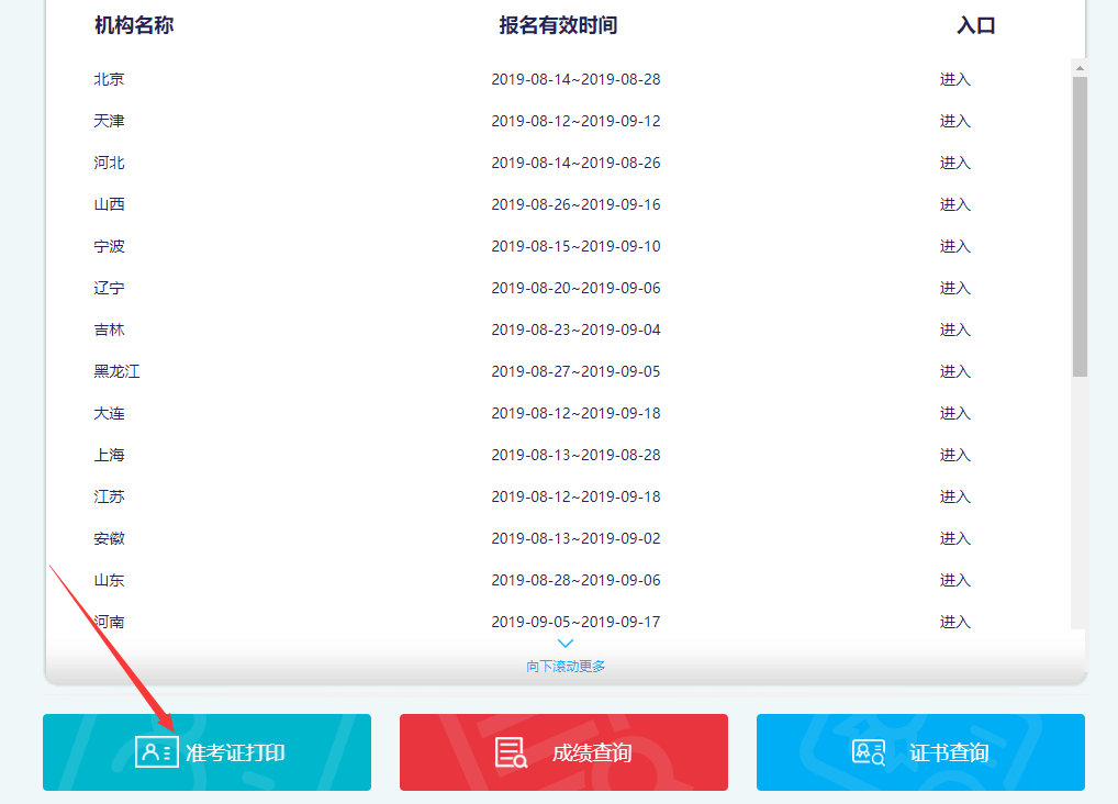 第三步:進(jìn)入報(bào)名入口頁(yè)面后,點(diǎn)擊準(zhǔn)考證打印。